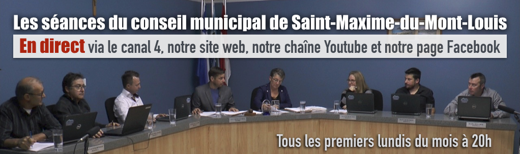 En collaboration avec la municipalité de Saint-Maxime-du-Mont-Louis en Haute-Gaspésie, diffusion en direct des séances municipales.